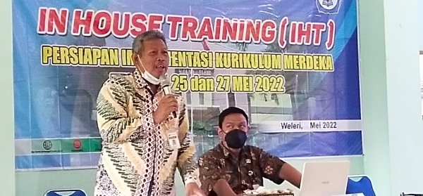 Dalam rangka implementasi kurikulum merdeka pada tahun pelajaran 2022/2023, SMA Negeri 1 Weleri mengadakan in house training penyusunan dokumen Kurikulum Merdeka seperti CP, ATP dan MA. Kegiatan dilaksanakan pada hari Rabu dan Jumat Tanggal 25 dan 27 Mei 2022 yang melibatkan semua guru SMA Negeri 1 Weleri. Narasumber pada kegiatan ini adalah Bapak M. Khoirul Abshor,S.Pd.I, beliau adalah waka kurikulum dari SMA Negeri 1 Pegandon yang merupakan salah satu sekolah penggerak di Wilayah Cabdin XIII. Kegiatan In House Training ini bertujuan untuk menyusun dokumen kurikulum merdeka yang terdiri untuk melnegkapi dokumen E-KOSP yaitu Analisa Capaian Pembelajaran, Alur Tujuan Pembelajaran dan Modul Ajar yang doisusun oleh tim guru mata pelajaran. Pada awal penyampaian diberikan terlebih dahulu pengantar tentang essensi Kurikulum Merdeka dengan membandingkan terhadap kurikulum 2013.